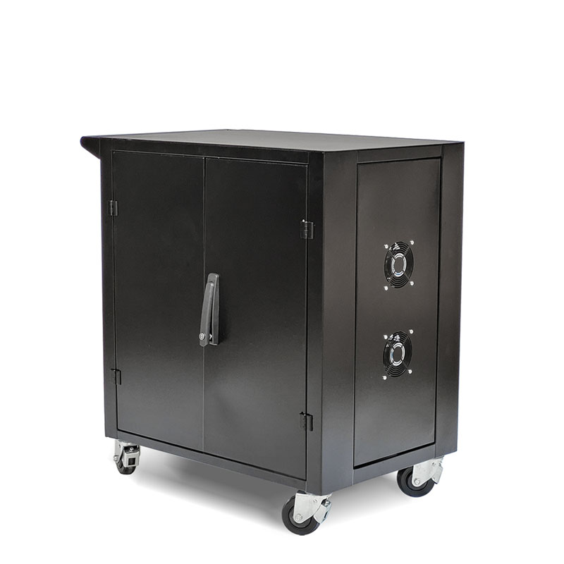 O Gabinete de Recarga para notebooks é fabricado em chapa de aço carbono e pintura pó eletrostática, possui bandejas internas para acomodação dos equipamentos e rodízios especiais de baixo ruído com freio. Possui dispositivo para proteção do usuário contra choques elétricos, curto-circuito e sobrecargas. Distribuição de energia para todos os equipamentos. Para não superaquecer os equipamentos, esse modelo tem ventiladores internos, bem como uma forração externa antiderrapante no teto e calha de tomada. Nosso Gabinete é robusto, é compacto, é preciso e principalmente muito seguro. A rede elétrica não precisa ser alterada pois esse equipamento é projetado para as tomadas comuns.